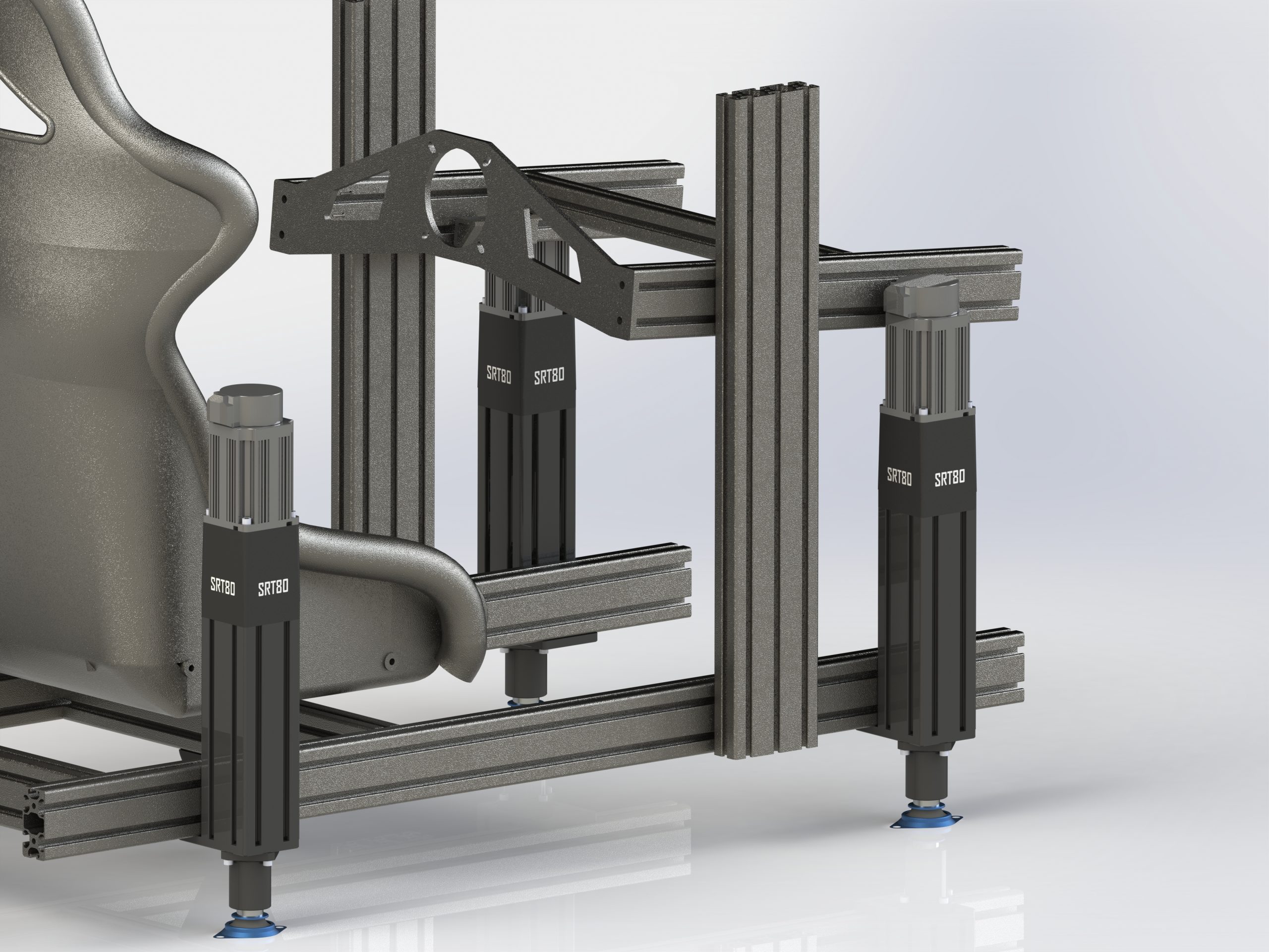 This set of 4 actuators lets you add 3 DOFs to your simulator: roll, pitch and vertical Gs!